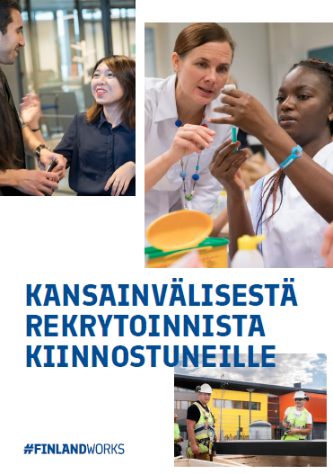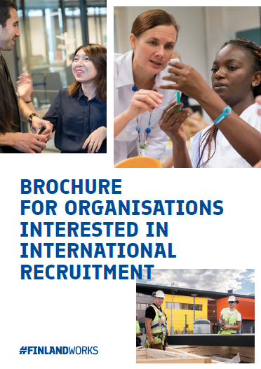 The guide and brochure contain essential information to consider in international recruitment processes, meaning the recruitment of foreign nationals or employees who have previously lived abroad. The availability of skilled workforce has become an increasingly common problem in Finland in almost all sectors and geographic areas, and particularly in the growth centres. At present, Finland’s labour needs cannot be met with the country’s own population alone. International workforce already living in Finland is eager to find employment that matches their skillset and, in addition, work based immigration is needed to answer the different needs. When employers consider the option of international recruitment, they significantly increase their chances of finding the best employee candidates.