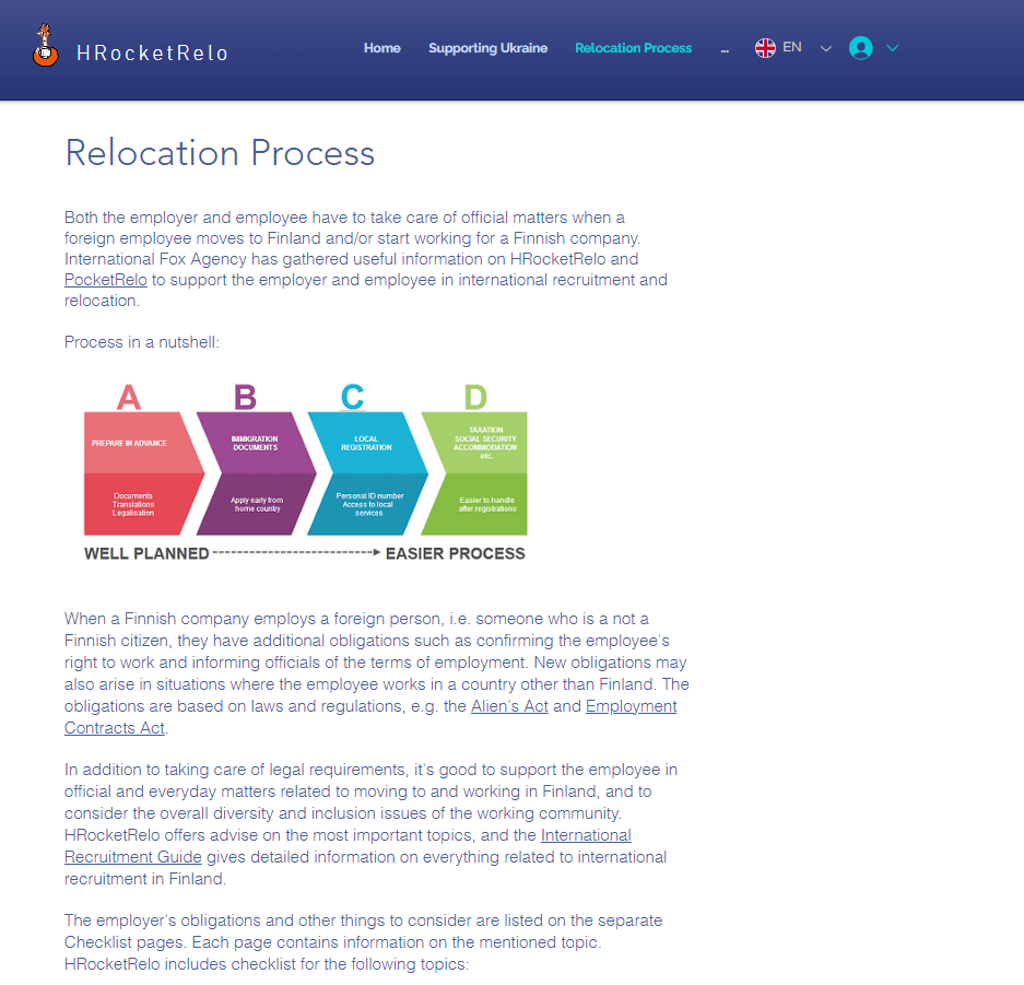 When hiring a new foreign employee, both the employer and the employee must take into account a few things related to the start of the employment relationship, immigration, and relocation, for instance. International Fox Agency has compiled useful information to support employers and employees in the digital HRocketRelo and PocketRelo services.